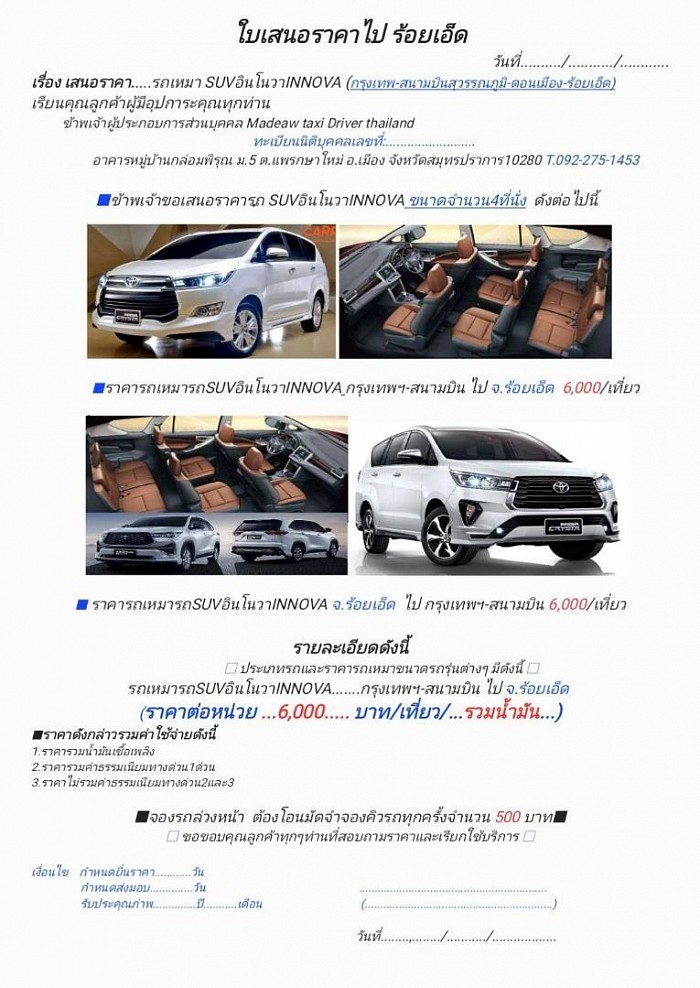 รับจองรถเหมา จองรถเช่าพร้อมคนขับล่วงหน้า สนามบินร้อยเอ็ด พื้นที่จังหวัดต่างๆทั่วไทย